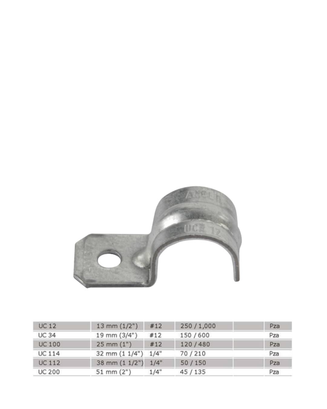 Abrazadera tipo uña para tubo de pared delgada (EMT). Fabricada en acero galvanizado de alta resistencia con acabado zincado que protege contra la corrosión. Diseñada para asegurar firmemente la tubería conduit a muros, plafones o estructuras metálicas. Su forma semicircular con base perforada permite una instalación rápida mediante tornillo o taquete. Cumple con normas NOM y UL. Disponible en medidas desde ½” hasta 2”. Ideal para instalaciones eléctricas residenciales, comerciales e industriales donde se requiere sujeción estable y duradera de la tubería EMT.