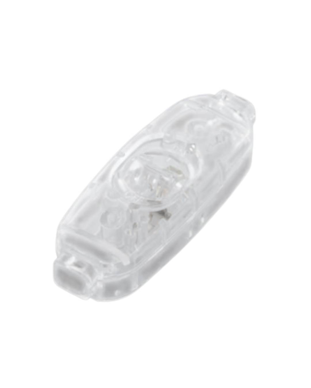 Apagador de paso transparente tipo línea, ideal para lámparas de mesa, extensiones o luminarias decorativas. Diseñado para interrumpir o restablecer el paso de corriente eléctrica de manera práctica y segura.