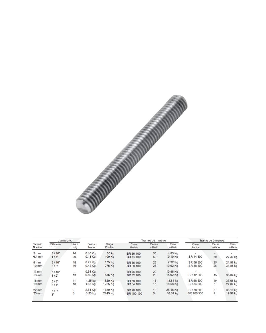 Barra roscada galvanizada calidad premium, fabricada en acero al carbono de alta resistencia con recubrimiento galvanizado por inmersión en caliente que ofrece excelente protección contra la corrosión. Presenta rosca continua tipo UNC (rosca estándar) a lo largo de toda su longitud, compatible con tuercas, arandelas y herrajes metálicos. Diseñada para aplicaciones de anclaje, suspensión de sistemas eléctricos, abrazaderas, bandejas portacables y estructuras metálicas. Cumple con las normas ASTM A307 y SAE J429. Disponible en diámetros desde ¼” hasta 1” y en longitudes estándar de 1 m y 3 m. Ideal para instalaciones industriales, mecánicas y eléctricas que requieren alta capacidad de carga y durabilidad.