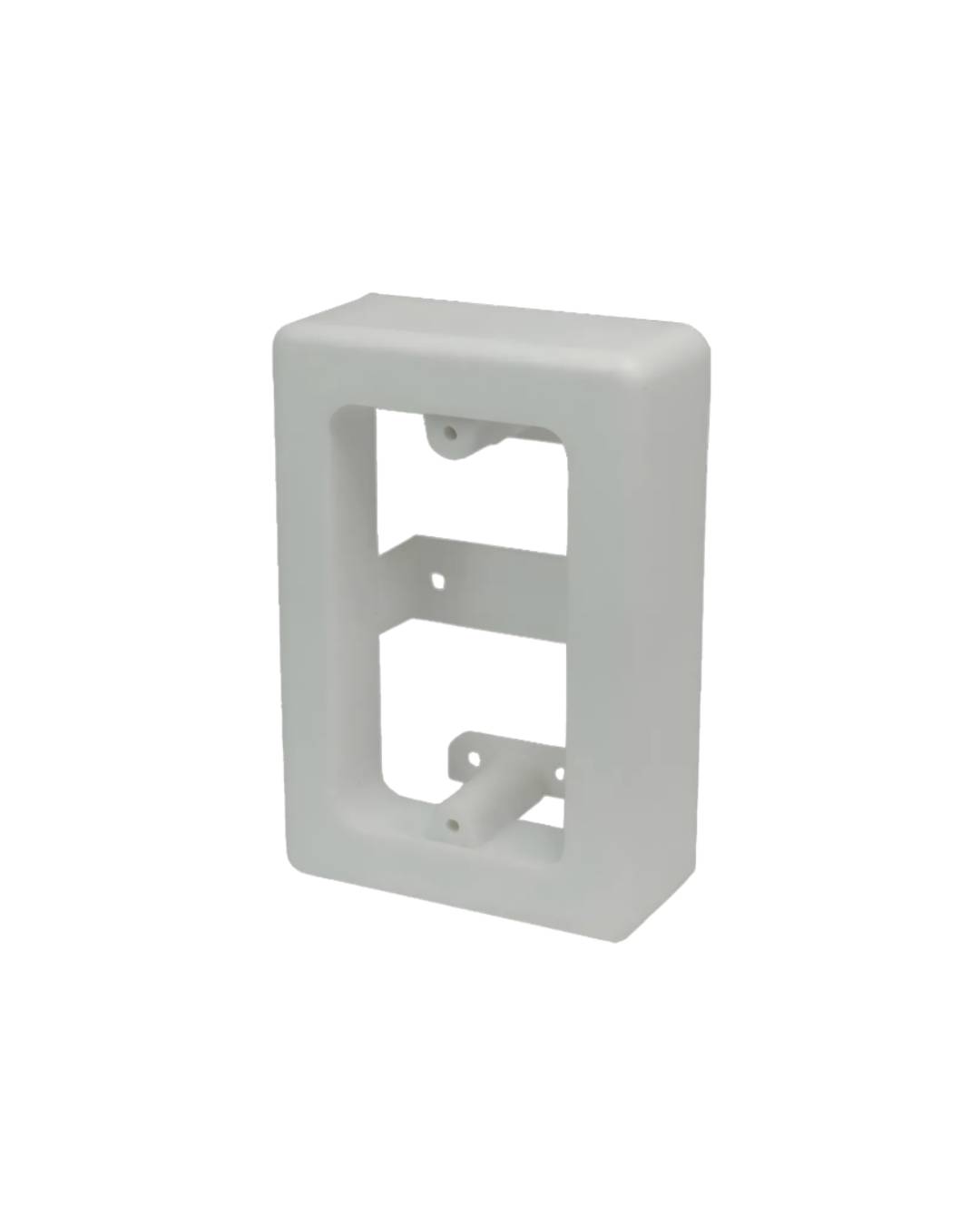 Chalupa de sobreponer fabricada en plástico ABS de alta resistencia, diseñada para alojar contactos, apagadores o dispositivos eléctricos en instalaciones aparentes.