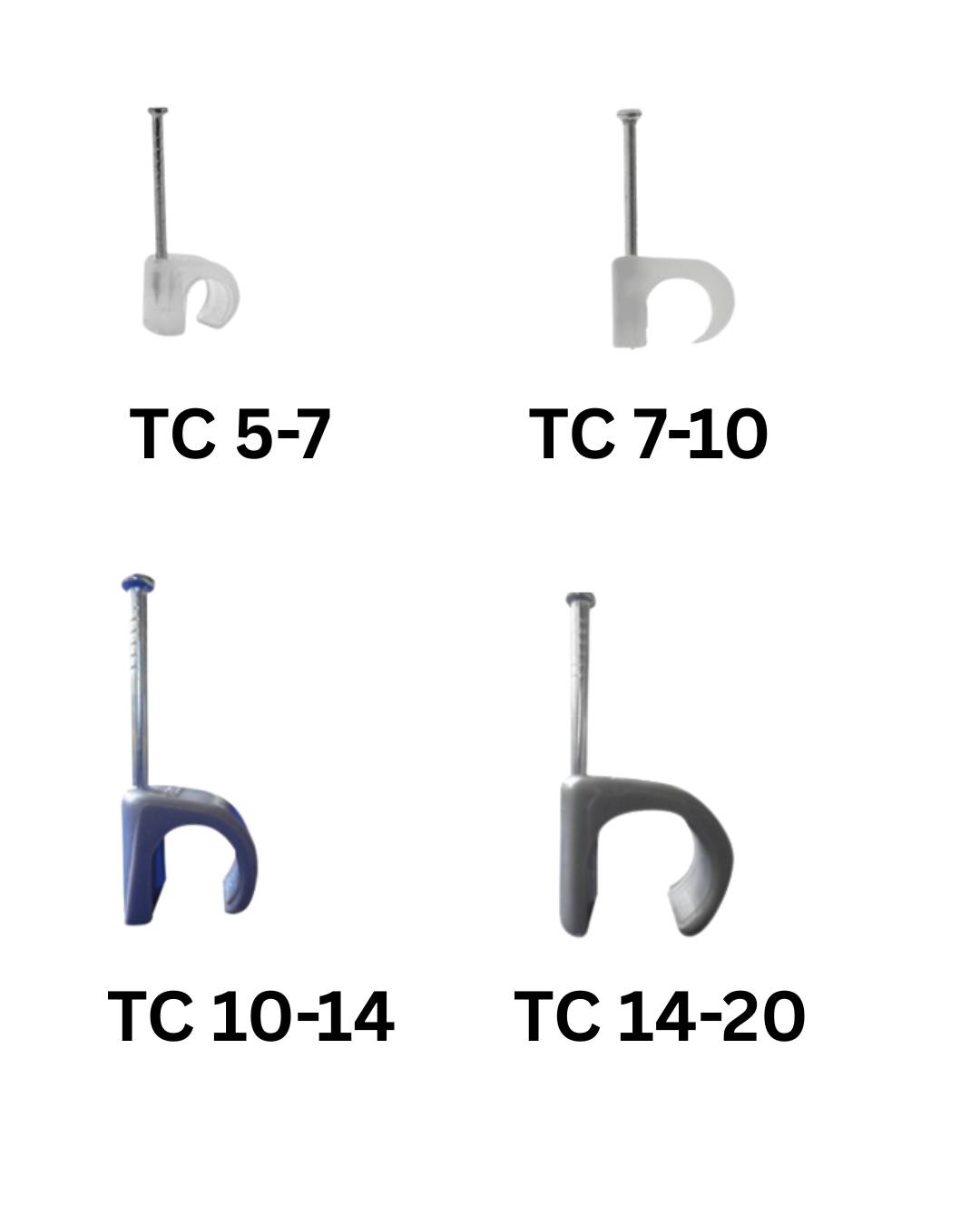Disponible en diferentes medidas: TC 5-7: para cables finos o telefónicos.TC 7-10: para cables eléctricos calibre mediano.TC 10-14: para cables coaxiales o de red.TC 14-20: para cables gruesos o mangueras flexibles.
