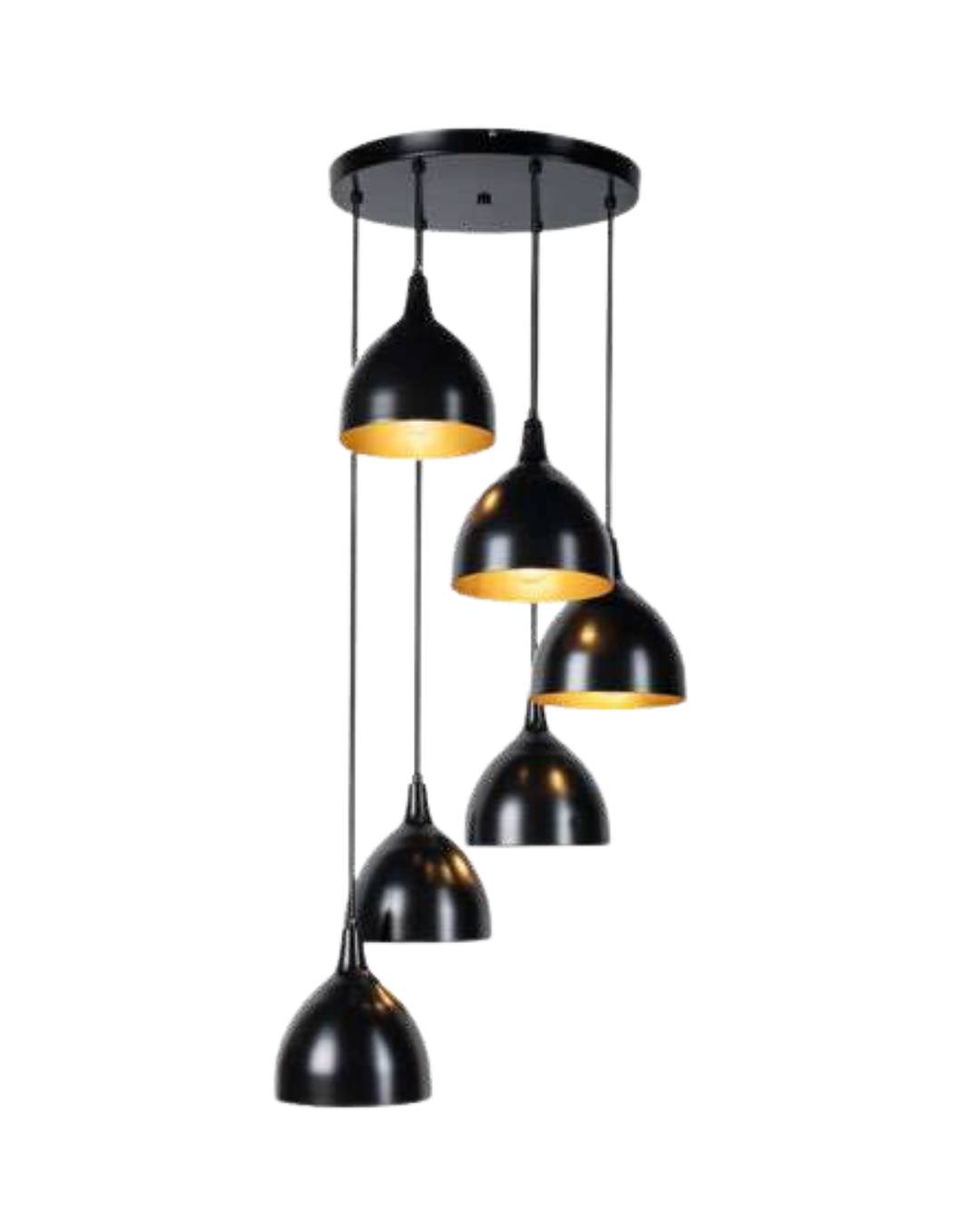 Lámpara colgante campana negro con dorado de 6 luces, cable negro. Interior. Medidas 35cm de diametro mas cable de 2m