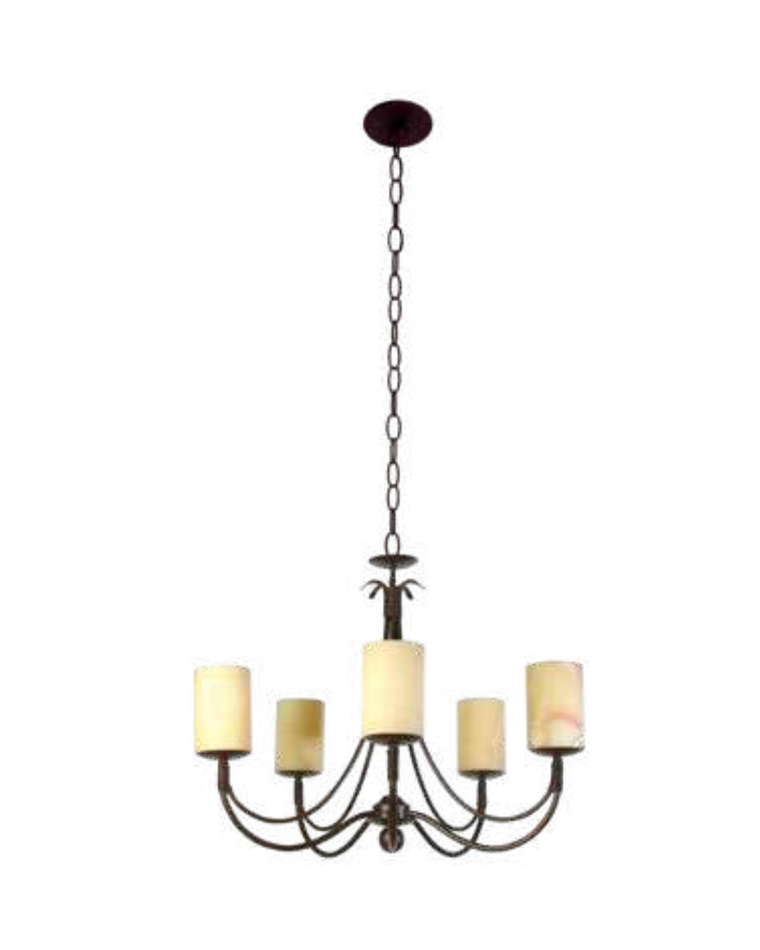 Lámpara colgante de ónix 5 luces, terminado acero forjado oxido, onix natural, no incluye focos, medidas 80×70 cm mas 45cm de cable.