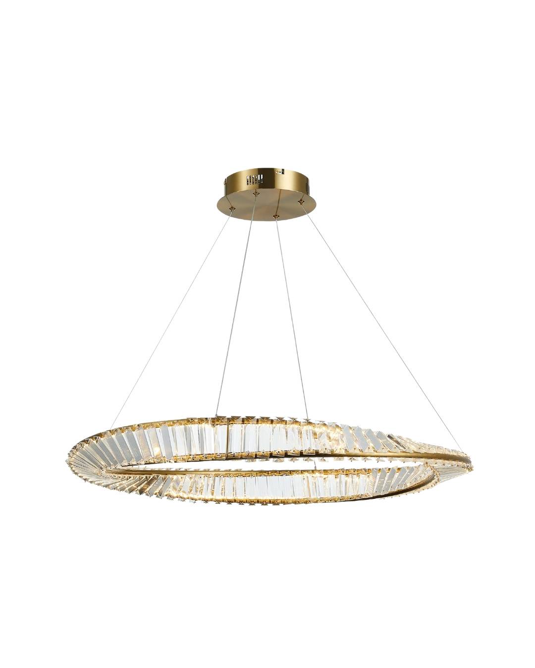Lámpara colgante led 30w circulo de cristal cortado, terminado dorado, luz cálida. medidas 80cm x 120cm máximo