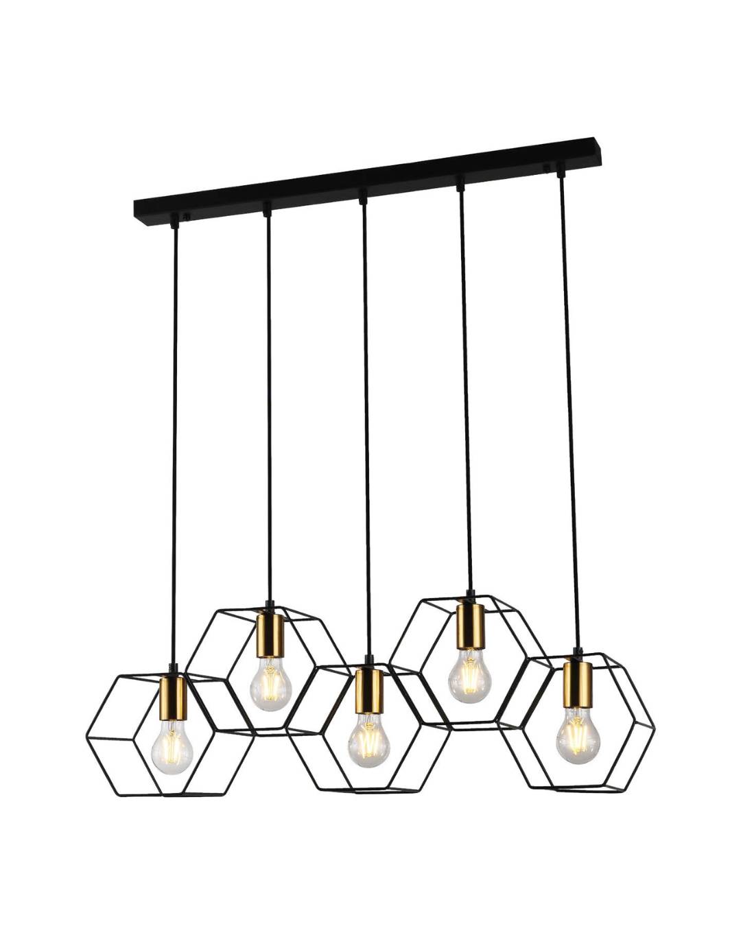 Lámpara led colgante 5 luces, 5 hexágonos, no incluye focos. 79cm x 120cm max