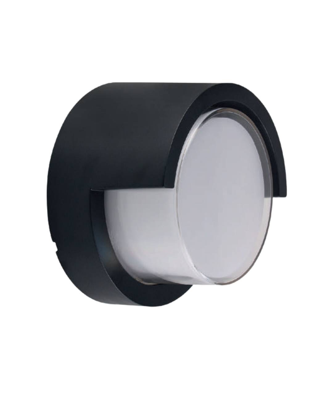 Lámpara led para pared 20w circular negra, luz cálida. IP44. Medidas 17.1 cm