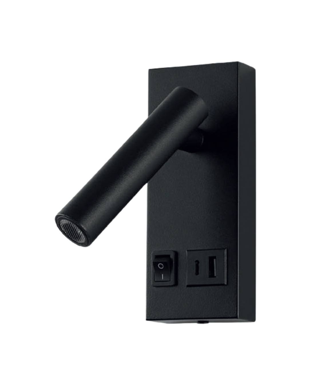 Lámpara led para pared de lectura negra 2w, luz cálida de aluminio con apagador y contacto usb, IP20, medidas 15×14 cm