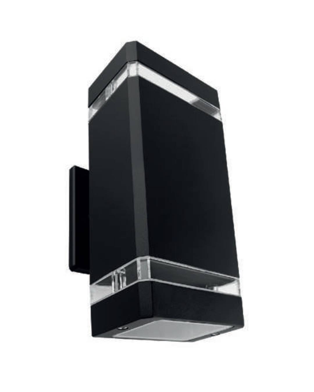 Lámpara para pared doble aro rectangular negra 2xGU10, cuerpo de aluminio y plastico. IP54, medidas 110x225x110mm