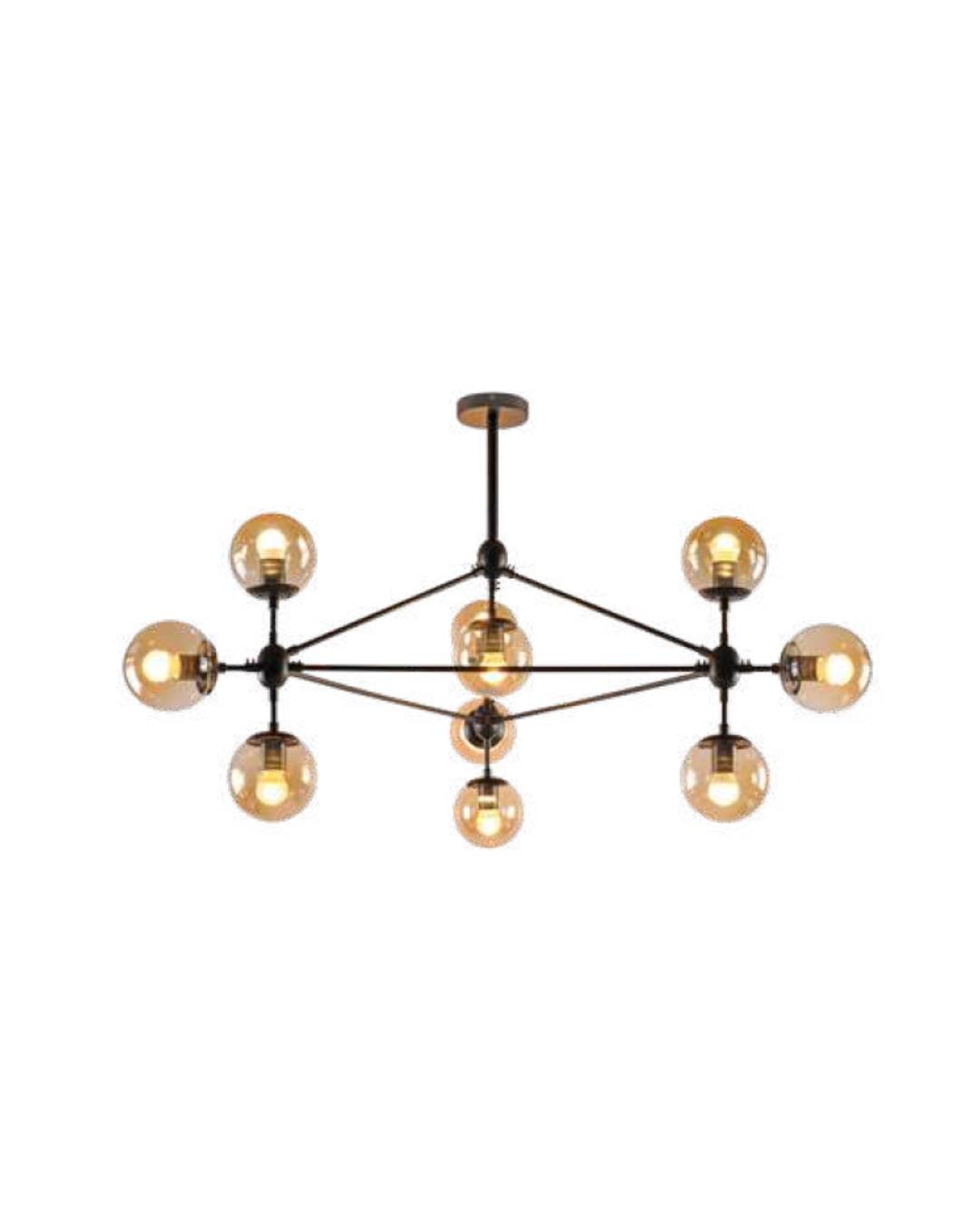 Lámpara suspendida para techo Cristal ambar terminado negro, 10 focos E26, no incluye focos. Medidas 105cm x 92 cm