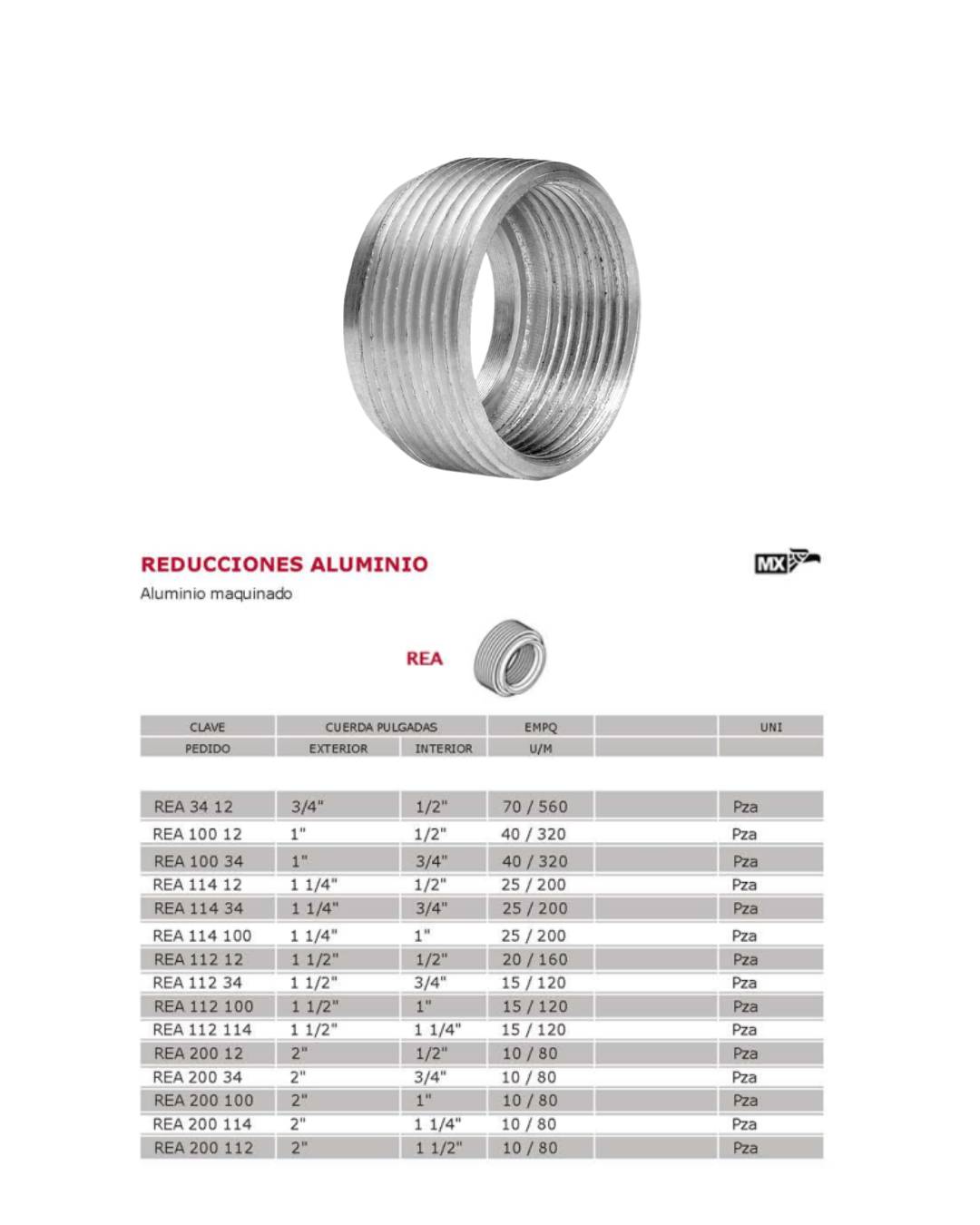 Reducción de aluminio roscada modelo REA marca Anclo. Fabricada en aluminio de alta pureza, ligera y resistente a la corrosión, ideal para instalaciones eléctricas y mecánicas. Su diseño con rosca interior y exterior permite acoplar tuberías, coples o accesorios con diferentes diámetros de manera segura. Compatible con tuberías conduit galvanizadas y de aluminio, garantizando una conexión firme y hermética. Cumple con las normas NEMA y UL aplicables. Disponible en reducciones de diversos calibres. Ideal para proyectos industriales, residenciales y comerciales donde se requiere una transición de medida sin comprometer la integridad del sistema.